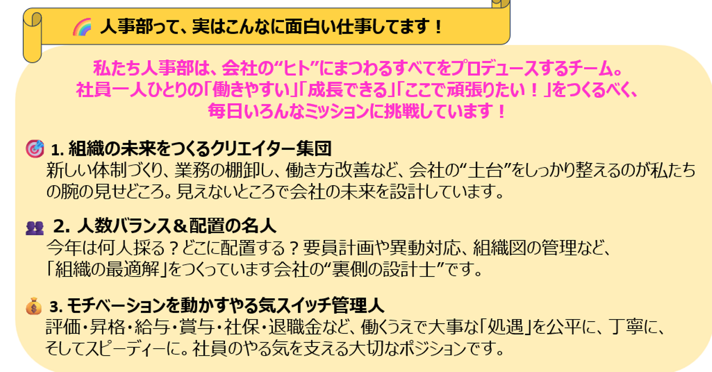 いかがでしたでしょうか。人事部の個性溢れる仲間と一緒に働きませんか?エントリーをお待ちしております!