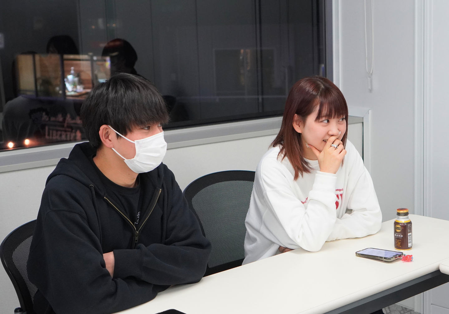 矢ヶ崎🐲 うんうん、温厚な人が多いってのは僕も感じてて、この中では多分僕が一番歴が長いと思うんですけど、怒鳴って怒られてるみたいな瞬間とかは1回も見たことないです。僕そういうの正直苦手なタイプなので、そういうのがないっていうのも気持ち的に働きやすいところだと思います。