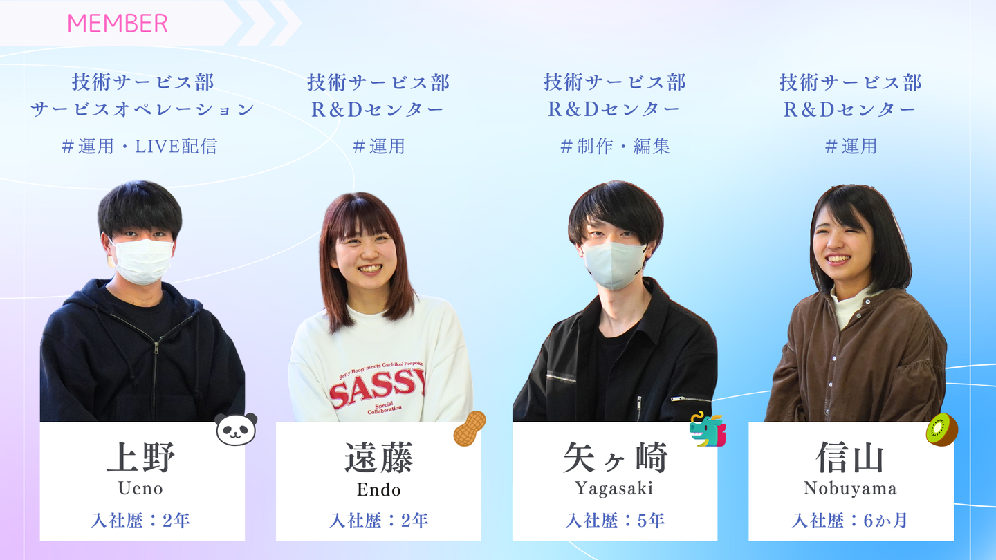 まずは、今回の座談会に参加してくれた4名のメンバーを、入社歴順にご紹介します。