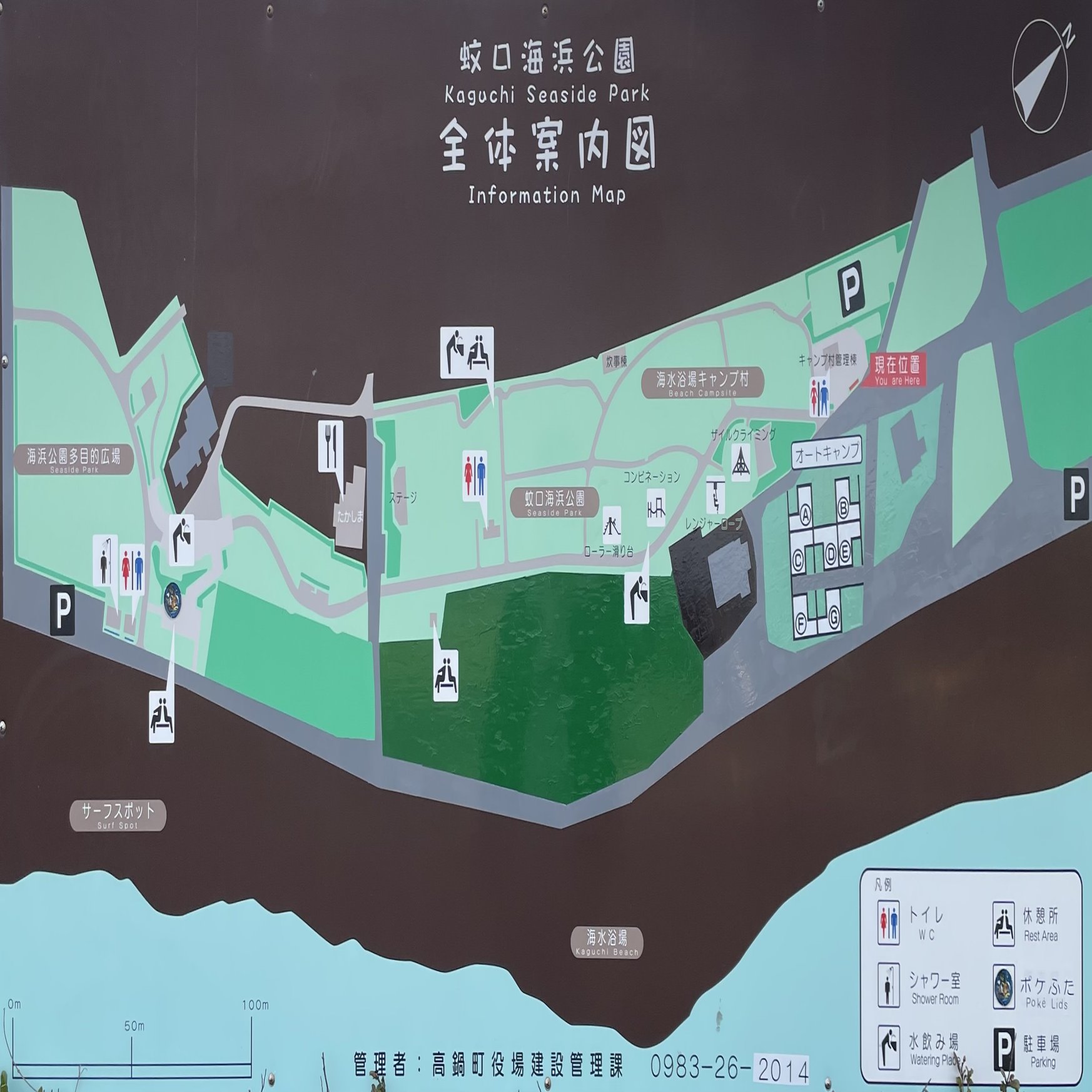 サーフィンスポット・海水浴場のほかにも、キャンプ場、オートキャンプ、グラウンドゴルフ、スケボー、子どもの遊具と、公園としてかなり充実した内容です。