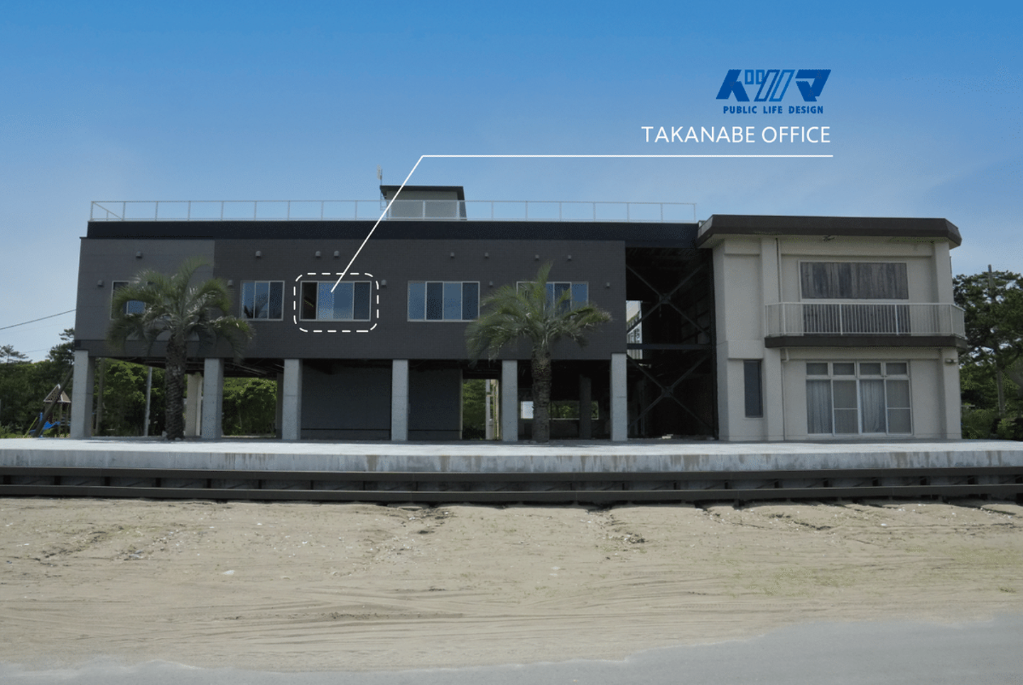 オフィスは駅から歩いてすぐの蚊口海浜公園、高鍋海水浴場目の前!