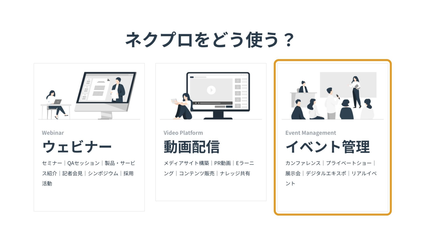 そのギャップを埋めるために、ネクプロは全てを一貫して提供できるサービスをつくったんですよね。受付、ページ作成、配信まで、全てを一貫して、ワンストップで提供できるというのは、イベント業界にとって画期的で、徐々に注目度が高まっていると感じています。