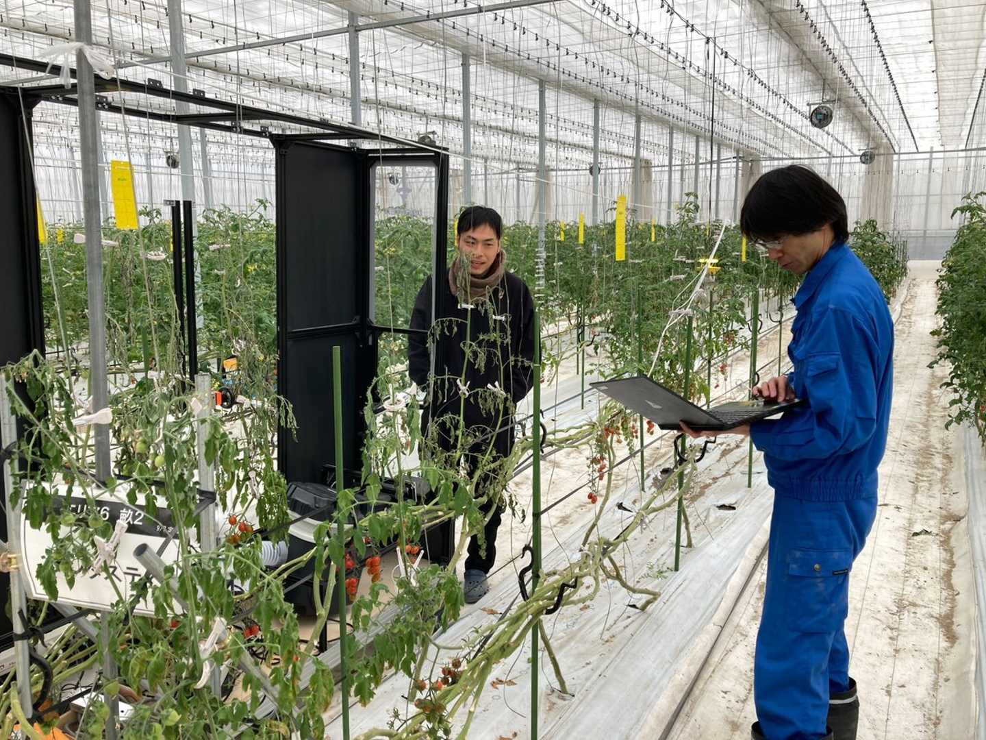 ー今の仕事内容を教えてください今はトマトの吸引収穫ロボットの開発に携わっています。農場で実際にロボットを動かしてトマトを吸い込む収穫実験をしています。トマトの向きや大きさやロボットの収穫動作などの条件を変えることで、収穫にどの程度役立てることができるかデータを集めています。 ロボットのハードの設計ではなく、試作したロボットを農場で実験したり、ロボットの動きを制御するためのソフトウェアを開発したりするような仕事です。
