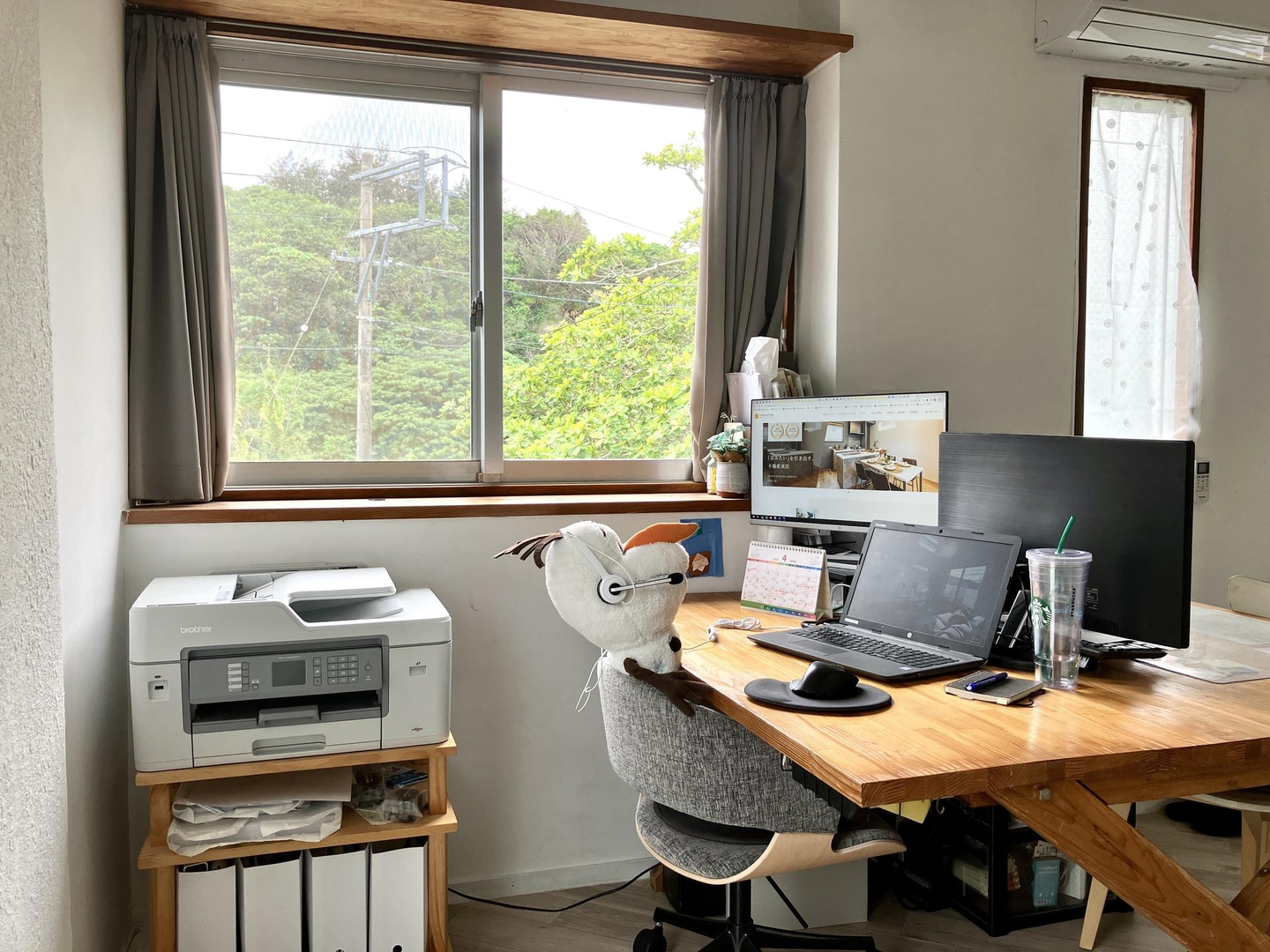 ↑ 窓からはフレッシュなグリーンと光があふれる、心地よさそうな田篭さんのホームオフィス。うらやましすぎます!