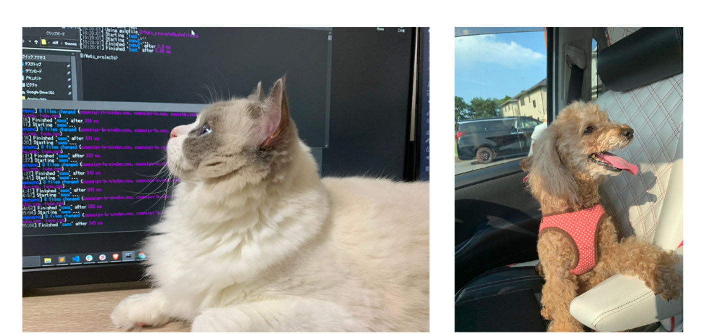 ペットたちと戯れる時間が増えたことですね。基本的には、ディレクター➡︎デザイナー➡︎エンジニアの順に仕事が降りてくるので、コーディングが最後の作業になるんです。だから、どこかの段階でスケジュールが遅れたりすると、納期は変わらないのでコーディングの担当者に皺寄せがくるんですね。土日返上で仕事しても終わらない…みたいなことも多々あります。それだけハードな仕事なので、前の会社だと朝出社して終電帰りみたいな状況も多くて。その分、大変な仕事である事には変わりないですが、大好きなペットたちに癒されながら家で仕事ができる今の環境はありがたいですね。