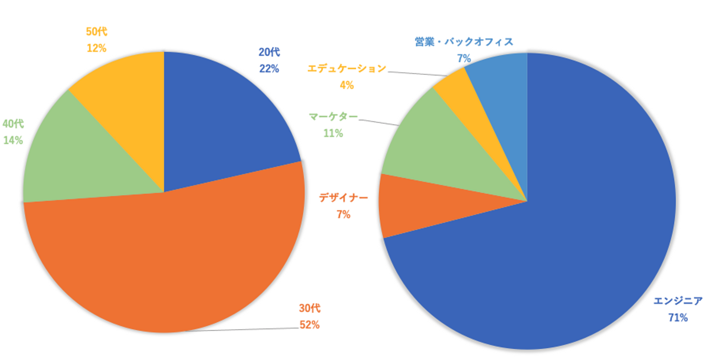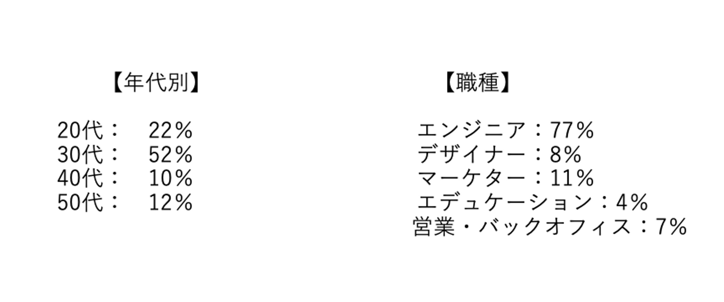 性別は圧倒的に男性が8割占めていますが、個人的には女性メンバーの比率も上げていきたいですね。