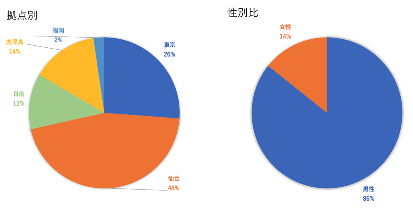 東京本社よりも仙台オフィスの方が社員割合が多いのですが、