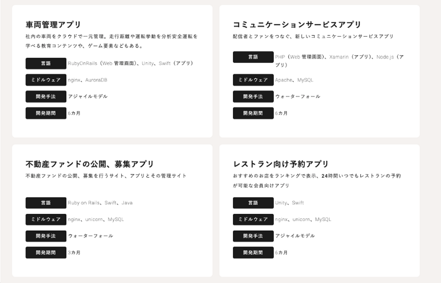 アプリ開発からWebサービス開発など多岐に渡ります。