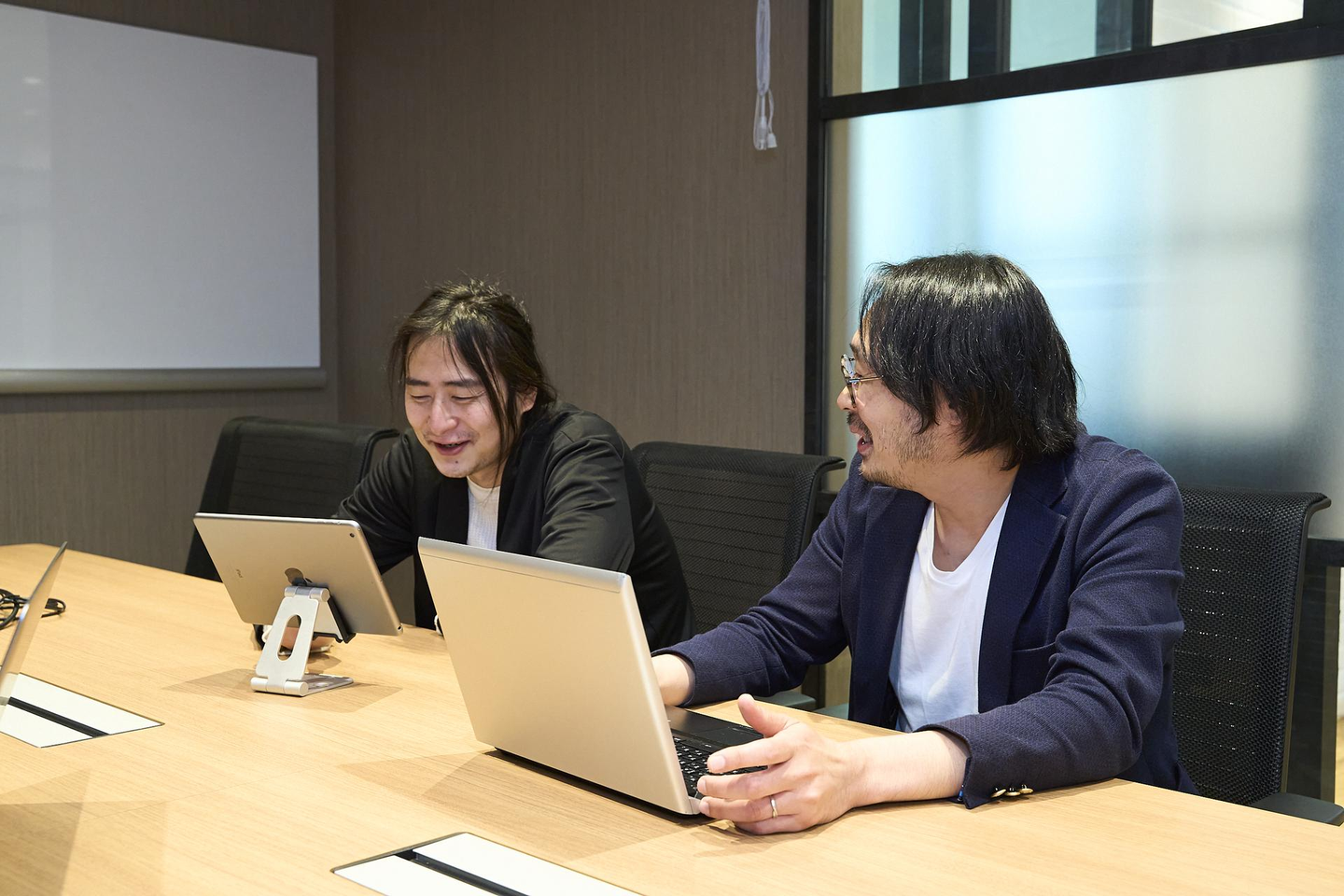 みなさん仕事に集中してとても静かな時もあれば、業務のことを相談したり、雑談したりしていると少し賑やかな雰囲気に変わります。