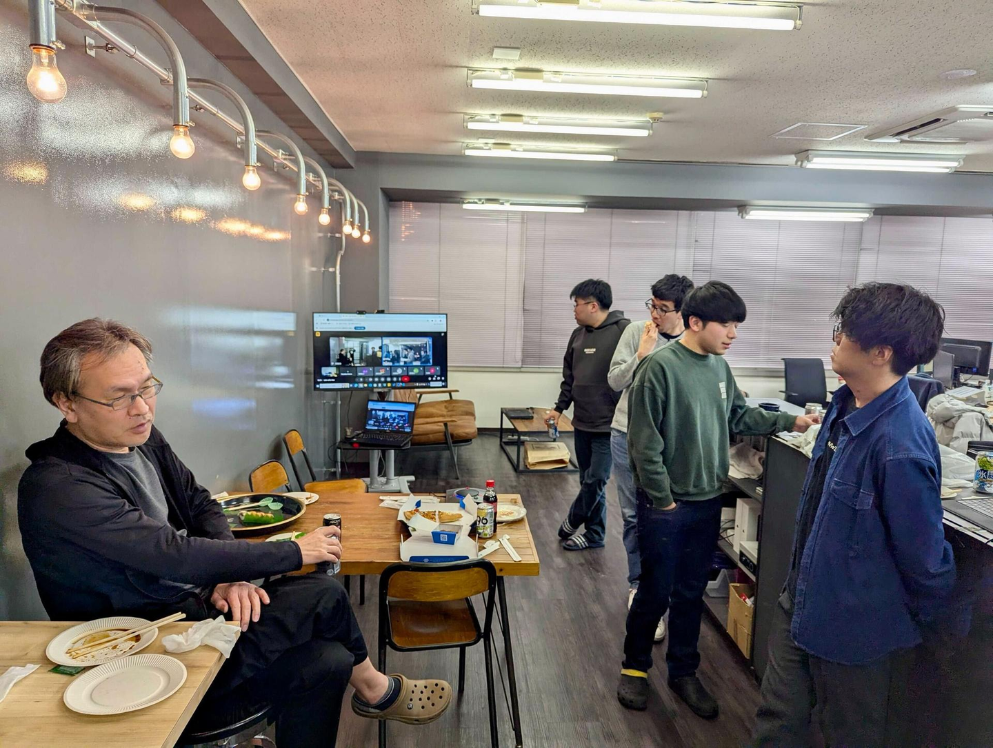 キックオフ終了後は、各オフィスに軽食を用意しオンラインで全オフィスを繋いだまま懇親会がスタートしました。なかなか全社メンバーが同じ時間に集まり、同じ時間を共有するイベントは少ないため、とても貴重な時間となりました。