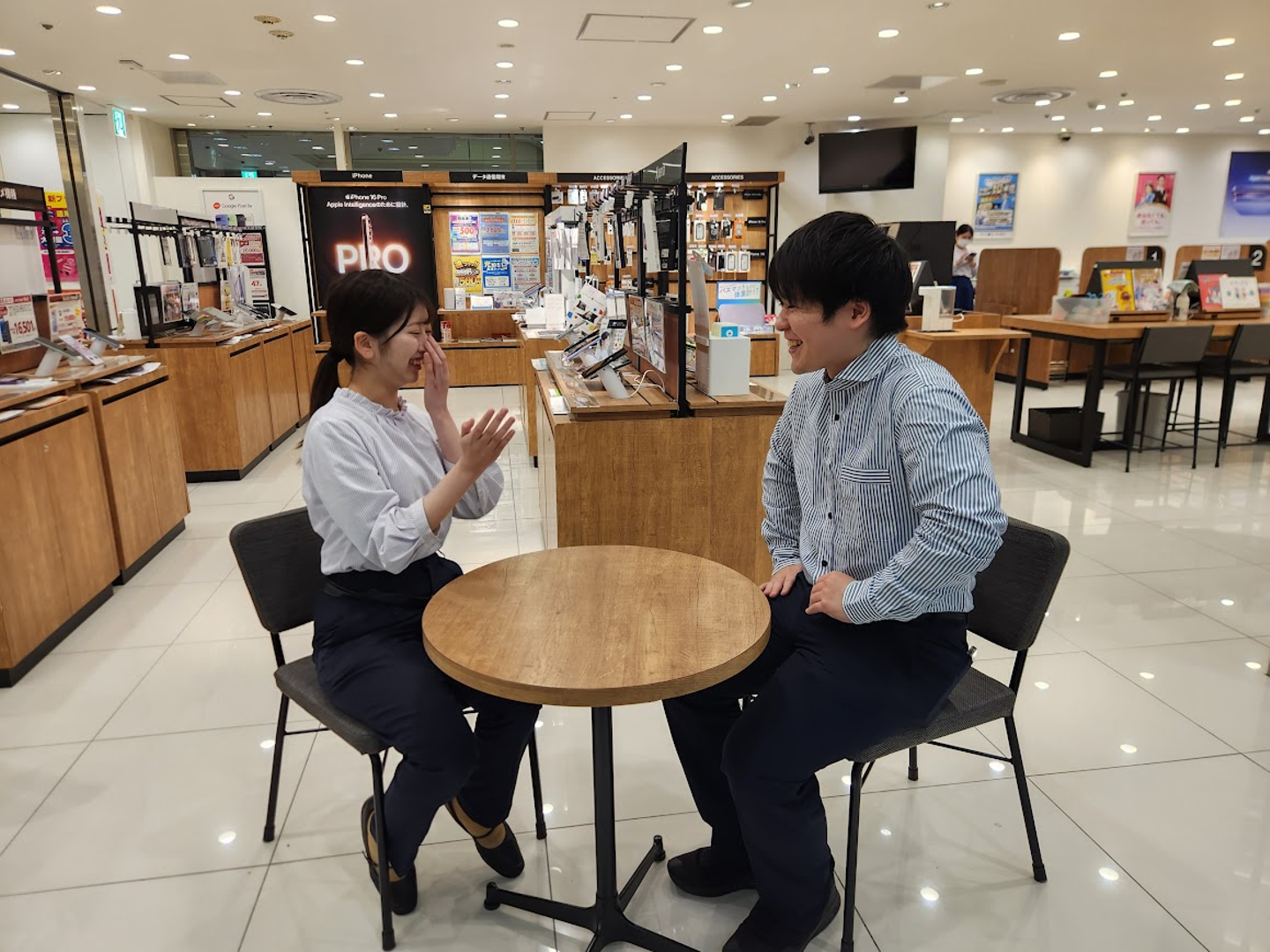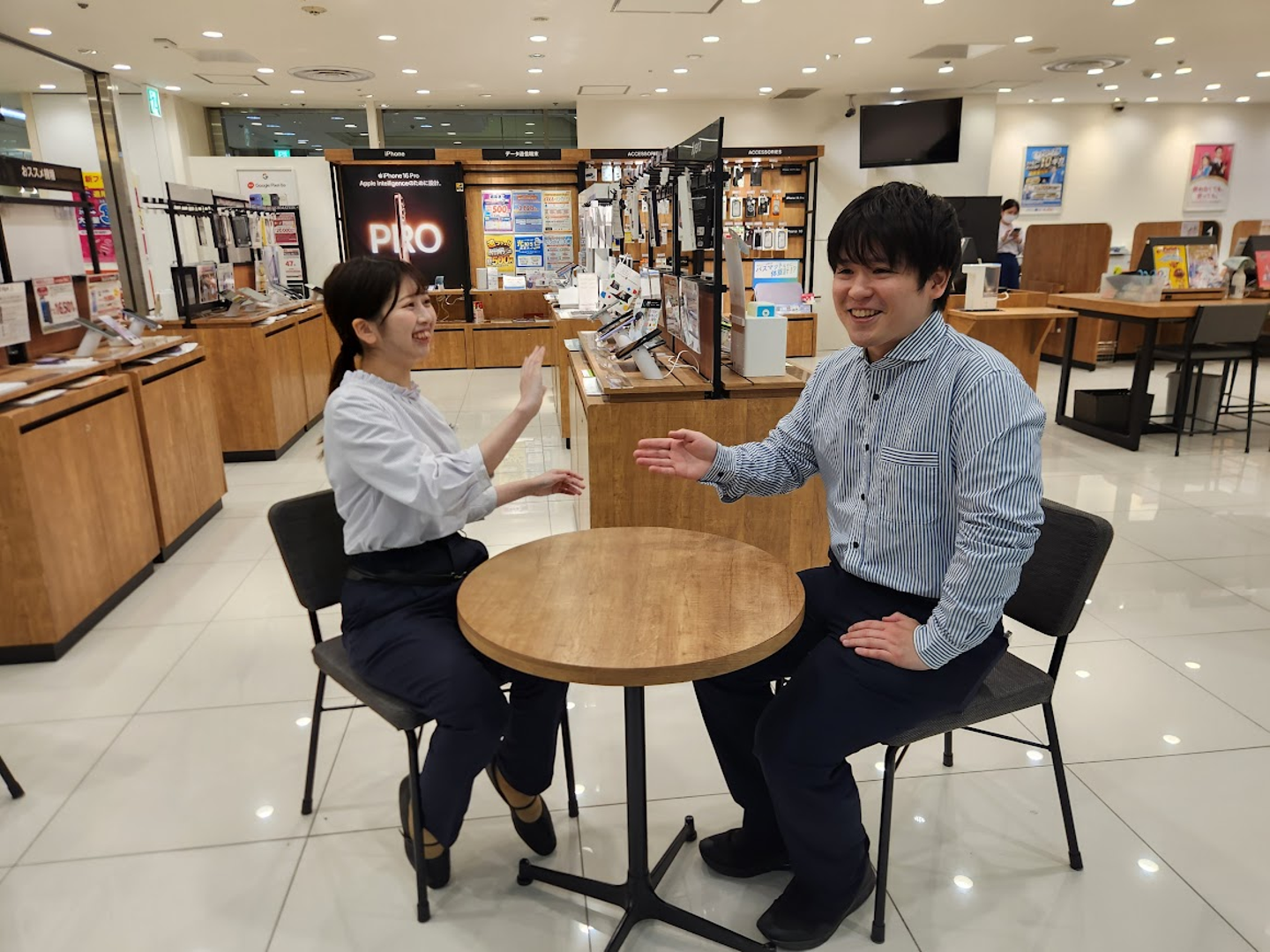 あとは…携帯ショップというと、なんとなく社内でピリつくことが多そうというイメージがあったのですが、全くそんなことはなく、優しく良い先輩たちばかりなのでそういった先輩たちと働けることが日々のモチベーションに繋がっています。