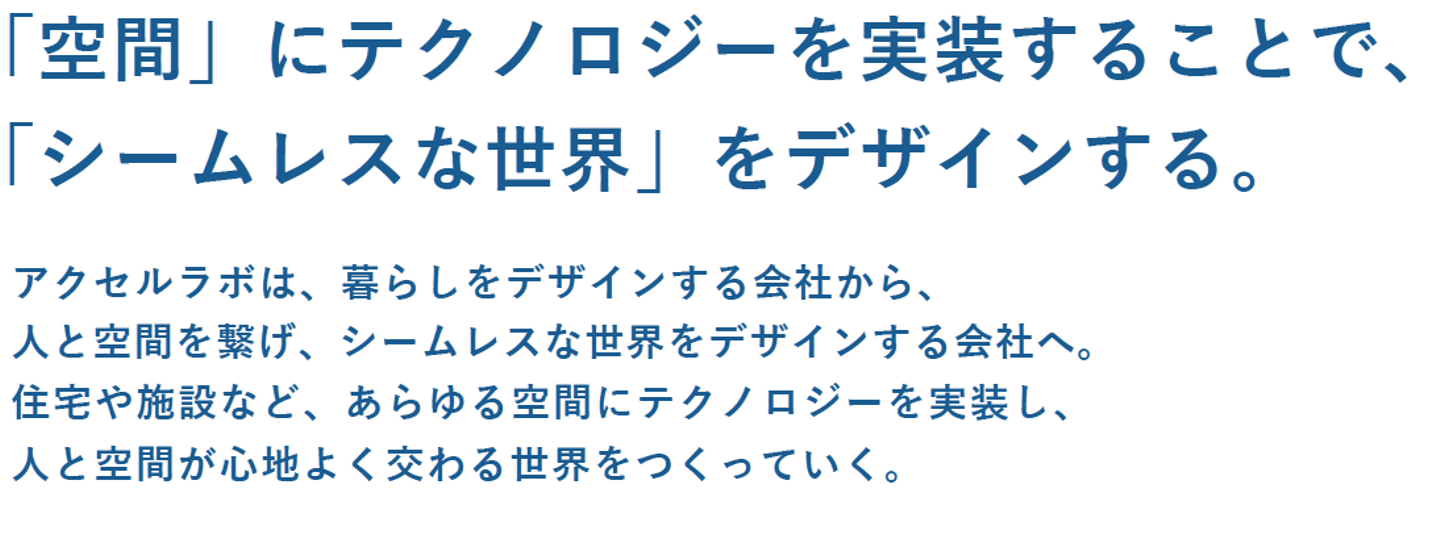 大嘉田:例えば、不動産業界とメインに取引をしてきたアクセルラボが介護やホテル等の業界と提携を進めていく中、相手からするとどう見えるのだろう?と考えました。暮らし”から”テクノロジー”にフォーカスしたMissionにすることで、私たちが実現したいことが伝わるのではないかと思いました。