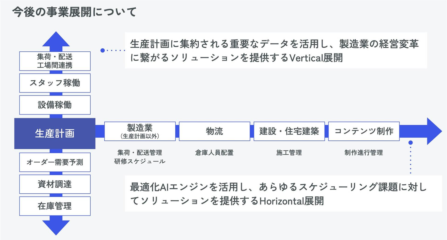 また、生産計画のような「スケジューリング」課題は様々な業種・シーンに存在するため、独自開発の最適化AIエンジンのPaaS化・横展開による事業拡張戦略も並行して進めております。すでに「新人研修スケジュール立案」等、大手企業との有償PoCもスタートしています。