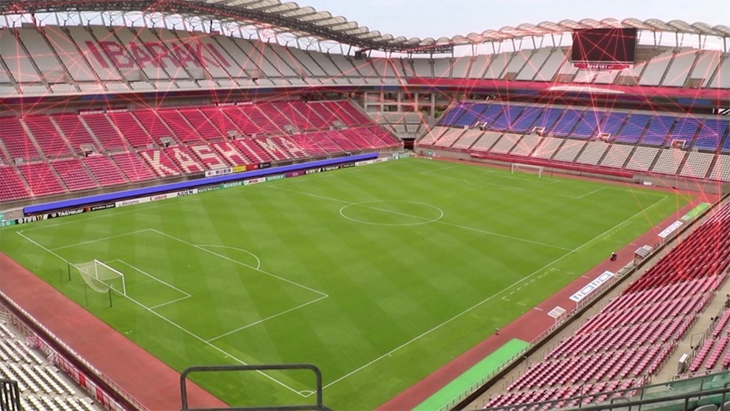カシマスタジアムには、一見わからないですが、高密度のWi-Fi網が整備されています。スタジアムをIoT化するために、Wi-Fiのアクセスポイントを新たに約450カ所設置。3万人以上の来場者が集まるため、受け入れ環境の整備からスタートしました。