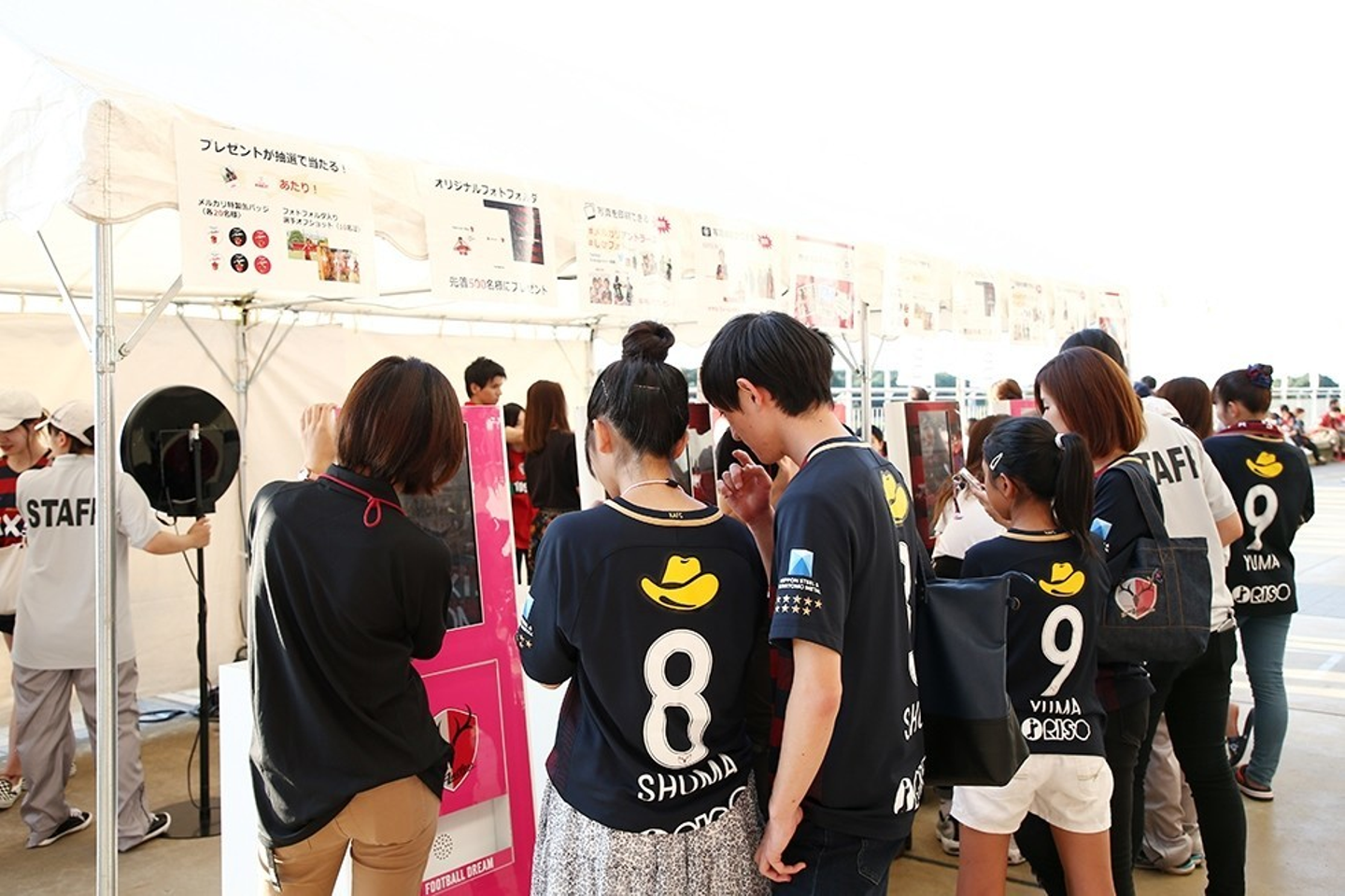 特定のハッシュタグを付けてSNSに投稿すると、その写真をプリントできるというサービスで、「来場記念」として、非常に好評です。来場者は無料で写真をプリントでき、スタジアムはSNSで宣伝してもらえるため、Win-Winの施策と言えます。