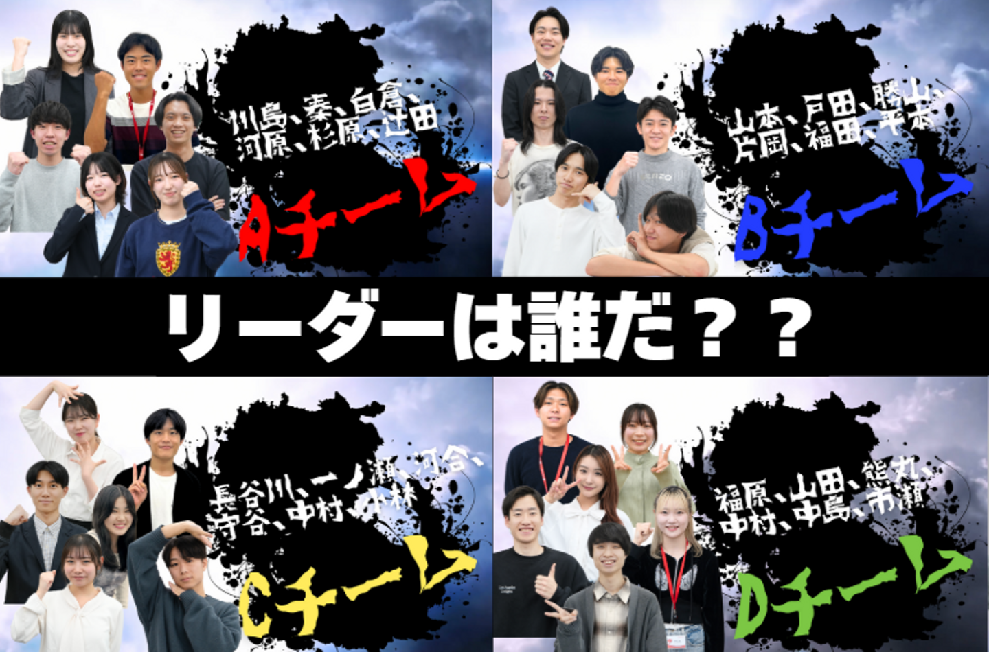 インターン生は4つのチームに分かれ、8月月初〜末日までの1ヶ月間で4チームのうちどのチームが最も高い件数獲得率を達成できるかを競い合う、熱いバトルがスタートします!