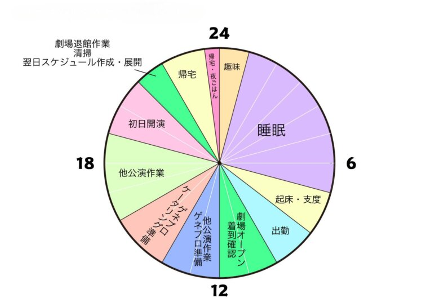 上記のキービジュアルひとつとってもいくつもの行程があるが、同時に公演そのものの制作業務も数多く抱える。そこで田邊さんのより具体的な1日の動きを追いかけてみよう。おおよそ「稽古期間中」と「劇場入り期間中」の2パターンに分けられるという。