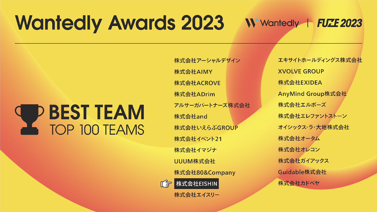 なんと!この度、株式会社EISHINが『Wantedly Awards 2023 Best Team部門 TOP100』にノミネートされました!✨