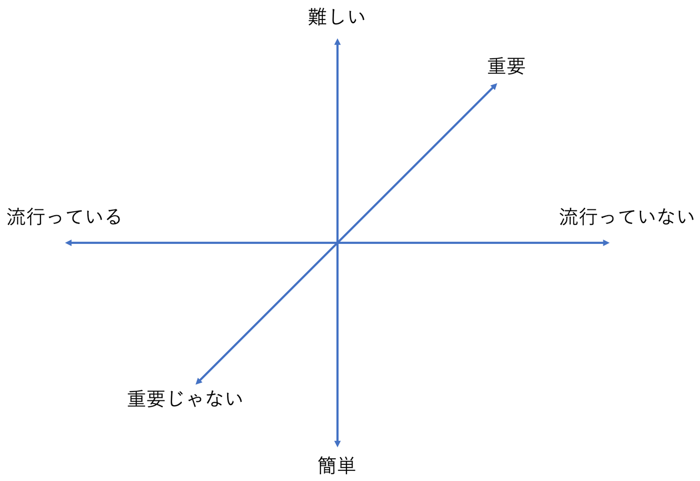 図の解説:右上にあたる難しくて、重要、かつ流行っていない部分にチャレンジすべき