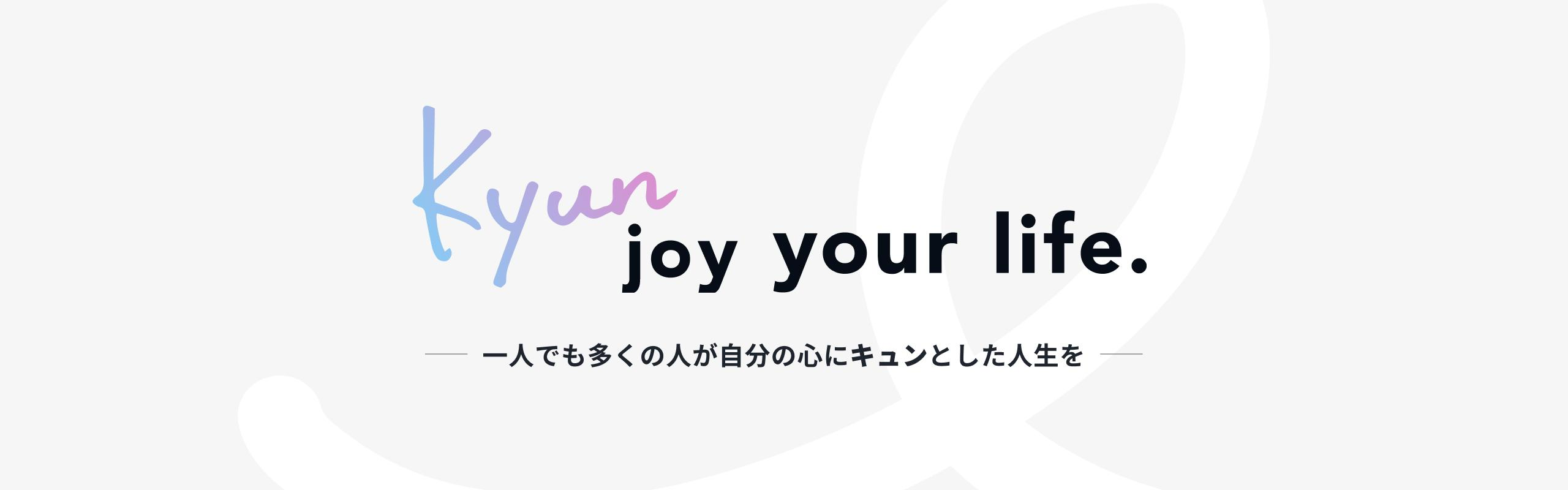 一人でも多くの人が自分の心にキュンとした人生を。 〜自己肯定感が高まる事業をつくり続けるリーディングカンパニー〜 テクノロジーの進化により、利便性や効率化が図られ、最適な選択が取りやすくなった一方で「自分らしい選択」をとることが減っている、と感じている方も多いのではないでしょうか。 私たちは、自分の心にときめく#Kyun や、喜び楽しむ#Joy を大切にしながら、誰もがありのままに自分が主役の人生を生きられる世界をつくることを使命とし、日本人の自己肯定感を高められるよう事業を作っていきます。