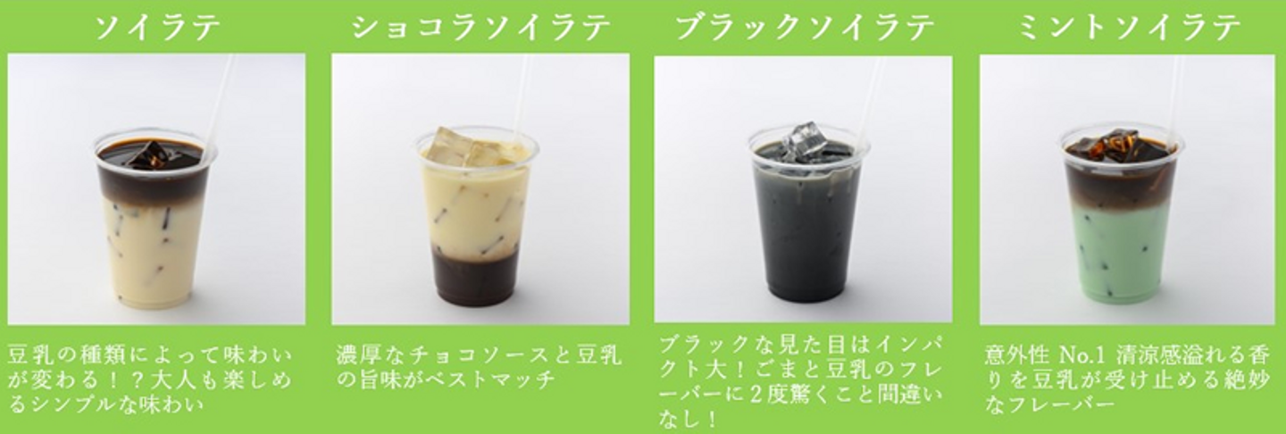 配布されるソイラテの種類は全4種類で、診断テストによってそのときの気分にあったものを提供してくれるそうです👀♡