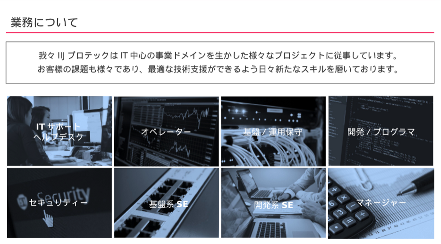 そんなIIJプロテックの強みは“特定の業種・業界や業務内容に偏らず、様々な分野の案件に対応”していることです。