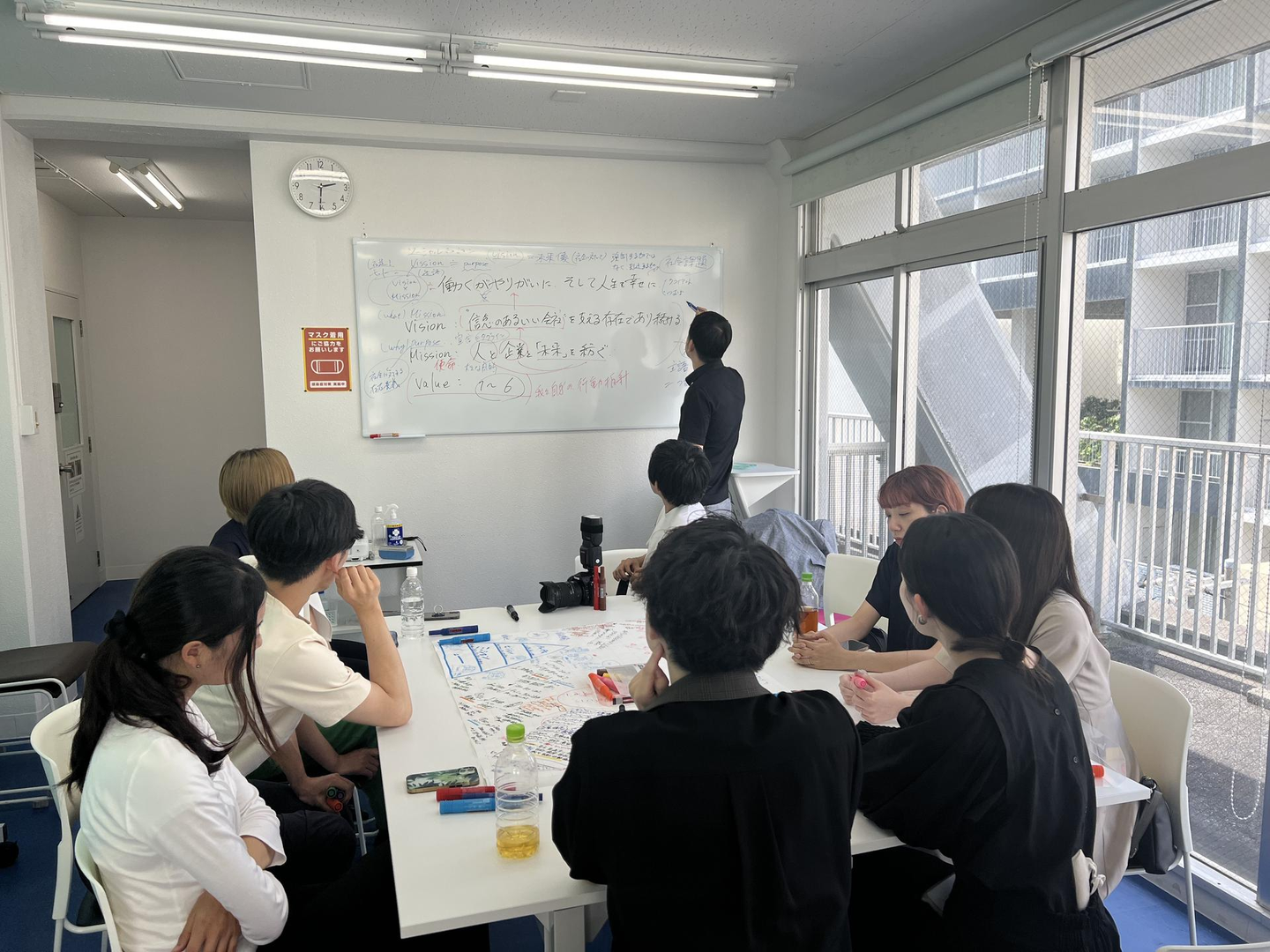 合宿の中で一枚の模造紙にみんなで書き込みながらのディスカッション。