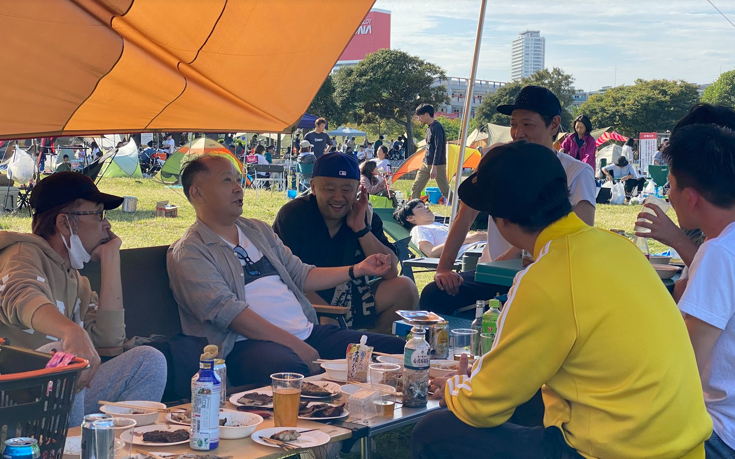 プロのキャンパー達が、タープやテーブル等、スノーピークのアイテムを提供してくれて、雰囲気の良い空間を盛り立ててくれました。