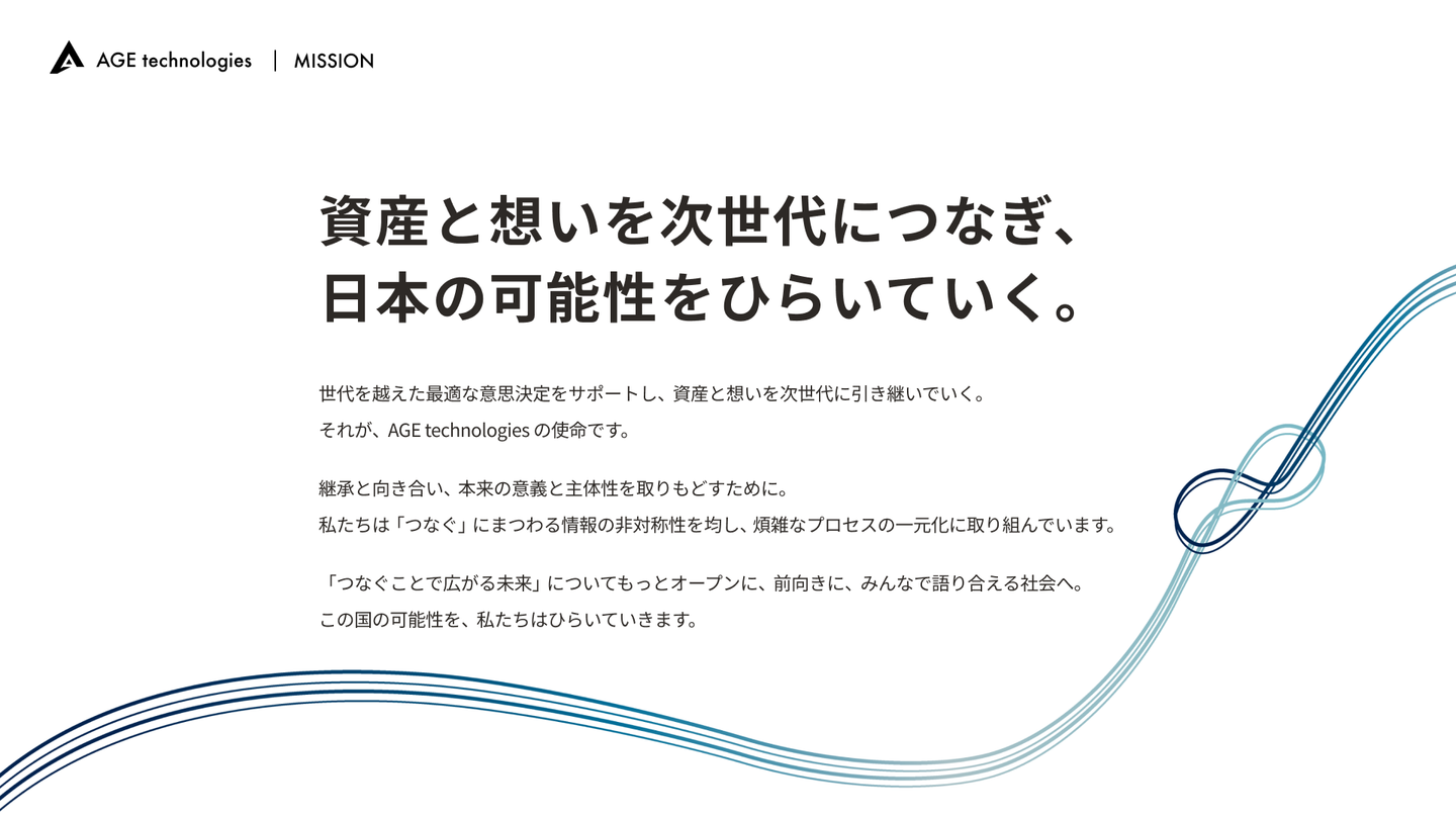 世代を越えた最適な意思決定をサポートし、資産と想いを次世代に引き継いでいく。それが、AGE technologies の使命です。