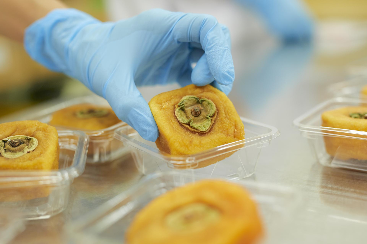 通常の干し柿よりも中がトロッと半熟食感で、柿本来の甘みのみで作られた