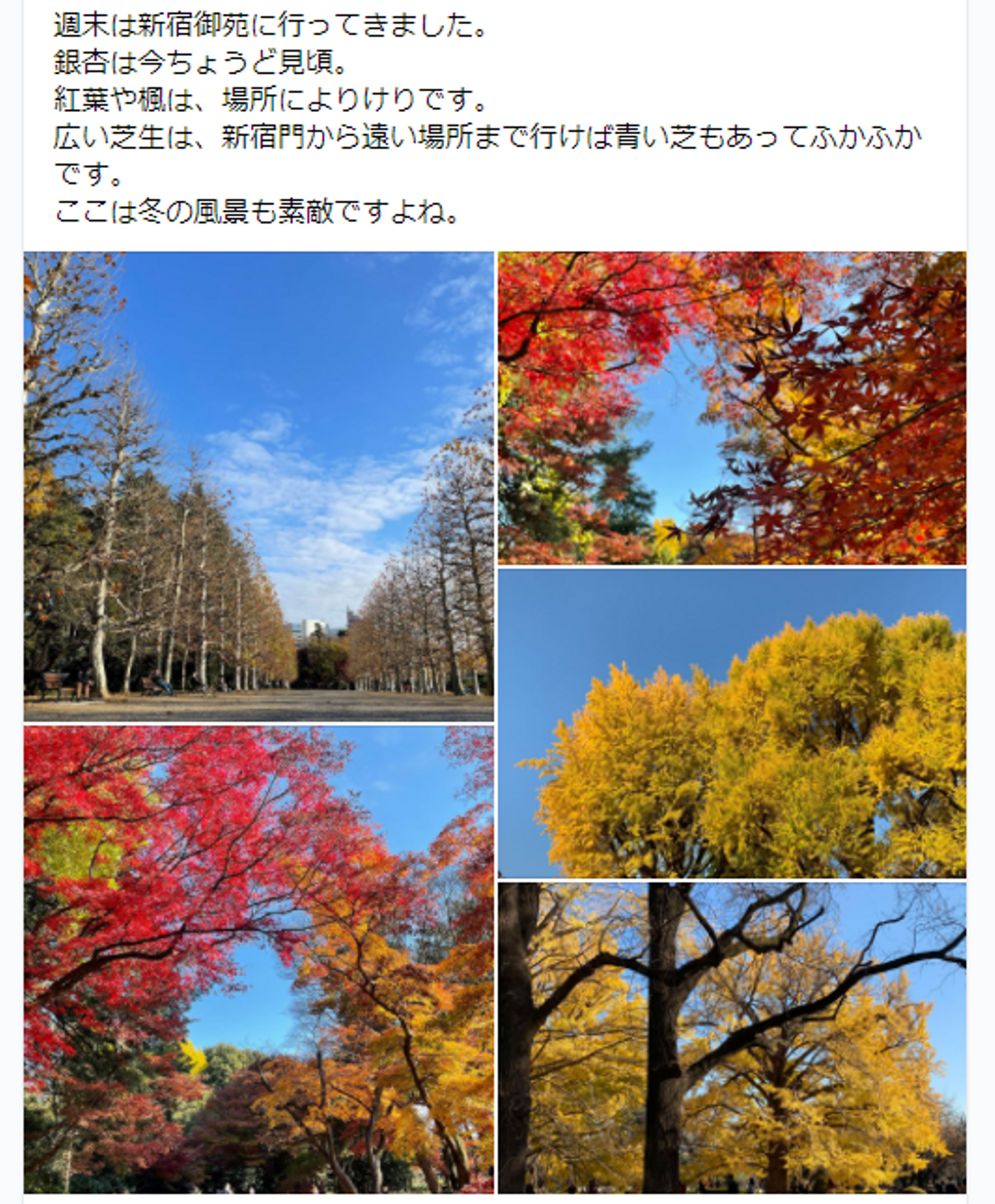 最近、Workplaceで「季節の写真」というグループが出来たのですが、季節感を感じるステキな写真がたくさん掲載されて、休憩時間の癒しになってます(*´ω`*)