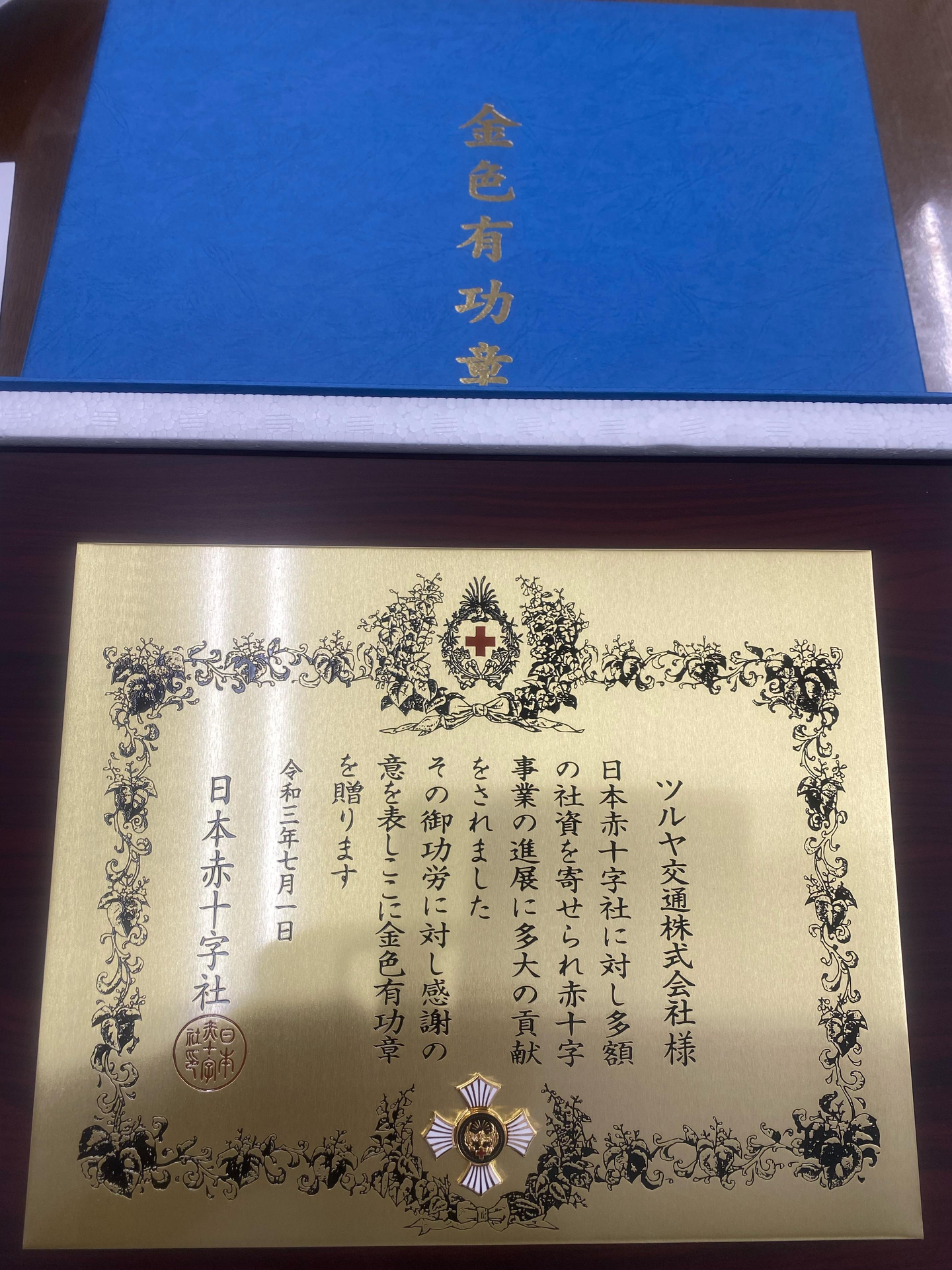 そのUDタクシーの売上の一部を日本赤十字に寄付を続けた事により、2021/07/01に【金色有功章】表彰を授与いただきました。