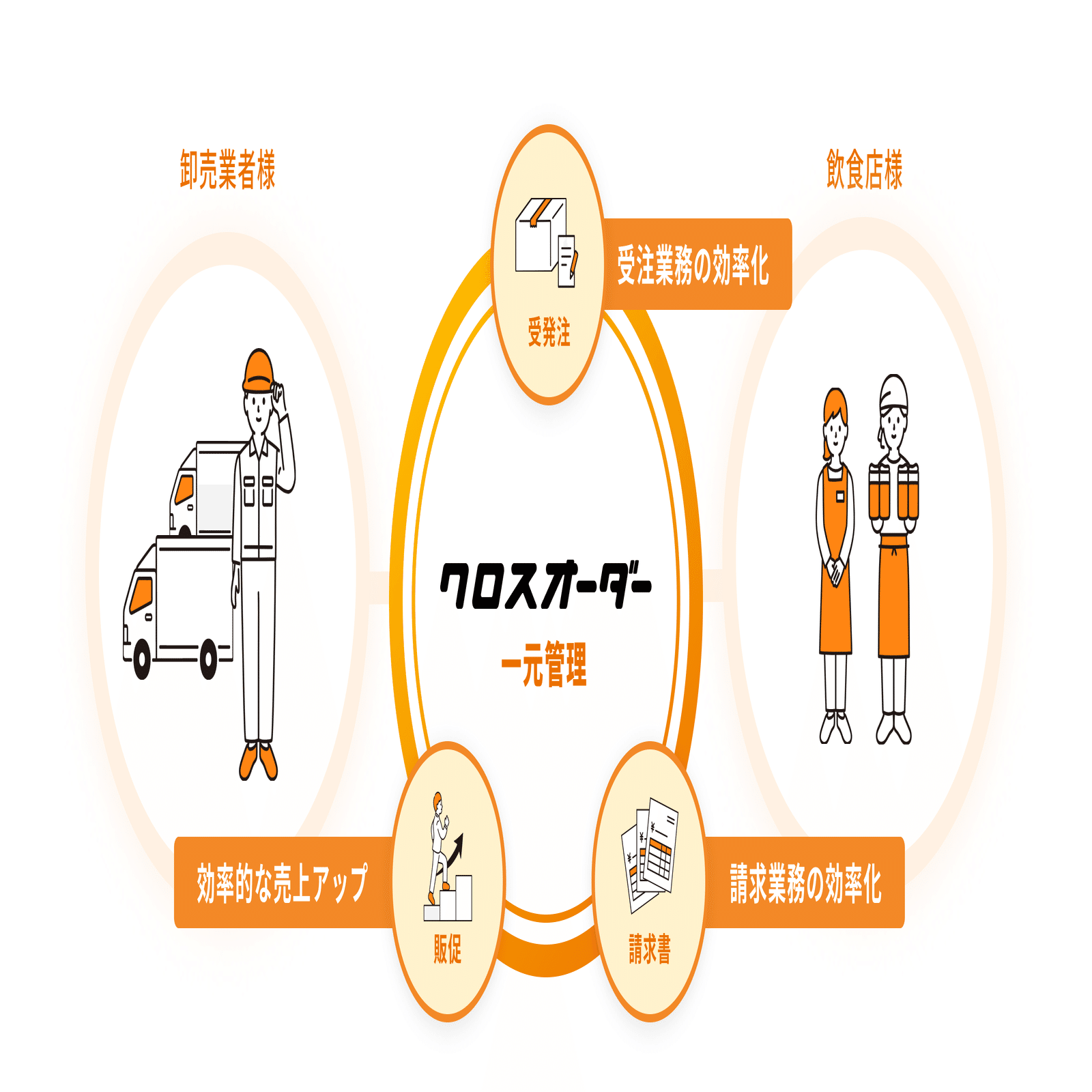 最近では、「クロスオーダー」に続き給食事業者向け受発注プラットフォーム 「クロスオーダー給食」 の提供を開始し、外食事業者にとどまらず、給食事業者の業務効率化も実現しています。