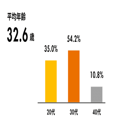 年齢構成・男女比:20,30代が大半を占める、成長を続ける組織。
