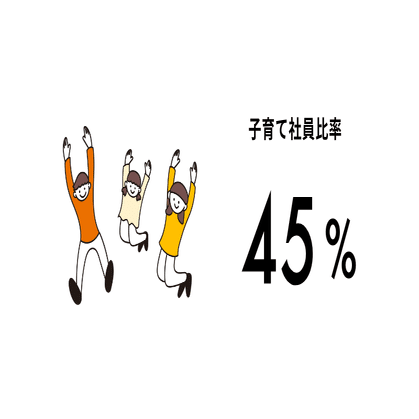 子育て社員比率:子育て比率は約4割。働くパパママが多い環境。