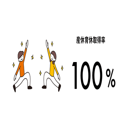 産休育休取得実績:取得率は100%!取得しやすい環境、戻ってきやすい環境が整っています。