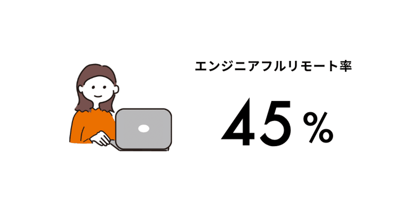 エンジニアフルリモート率:半数がフルリモートで勤務