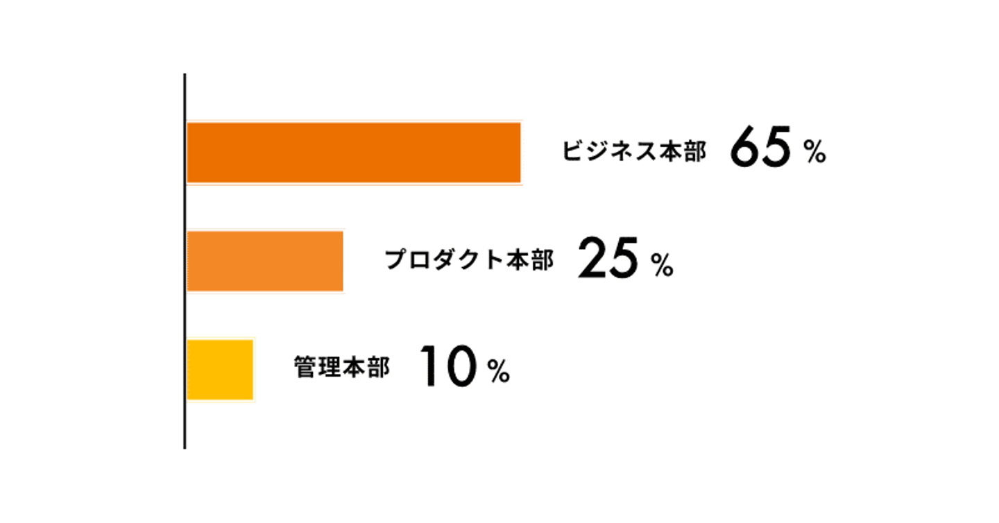 半分以上を締めるビジネス本部。フィールドセールス、カスタマーサクセス、インサイドセールスなどのメンバーで構成されています。