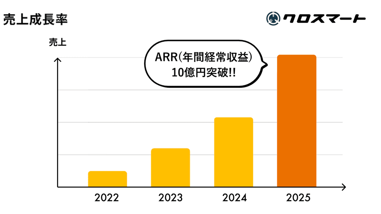 2019年11月のサービス提供開始から、右肩上がりで成長を続けています。2025年6月にはARR(年間経常収益)が10億円の大台を突破しました。