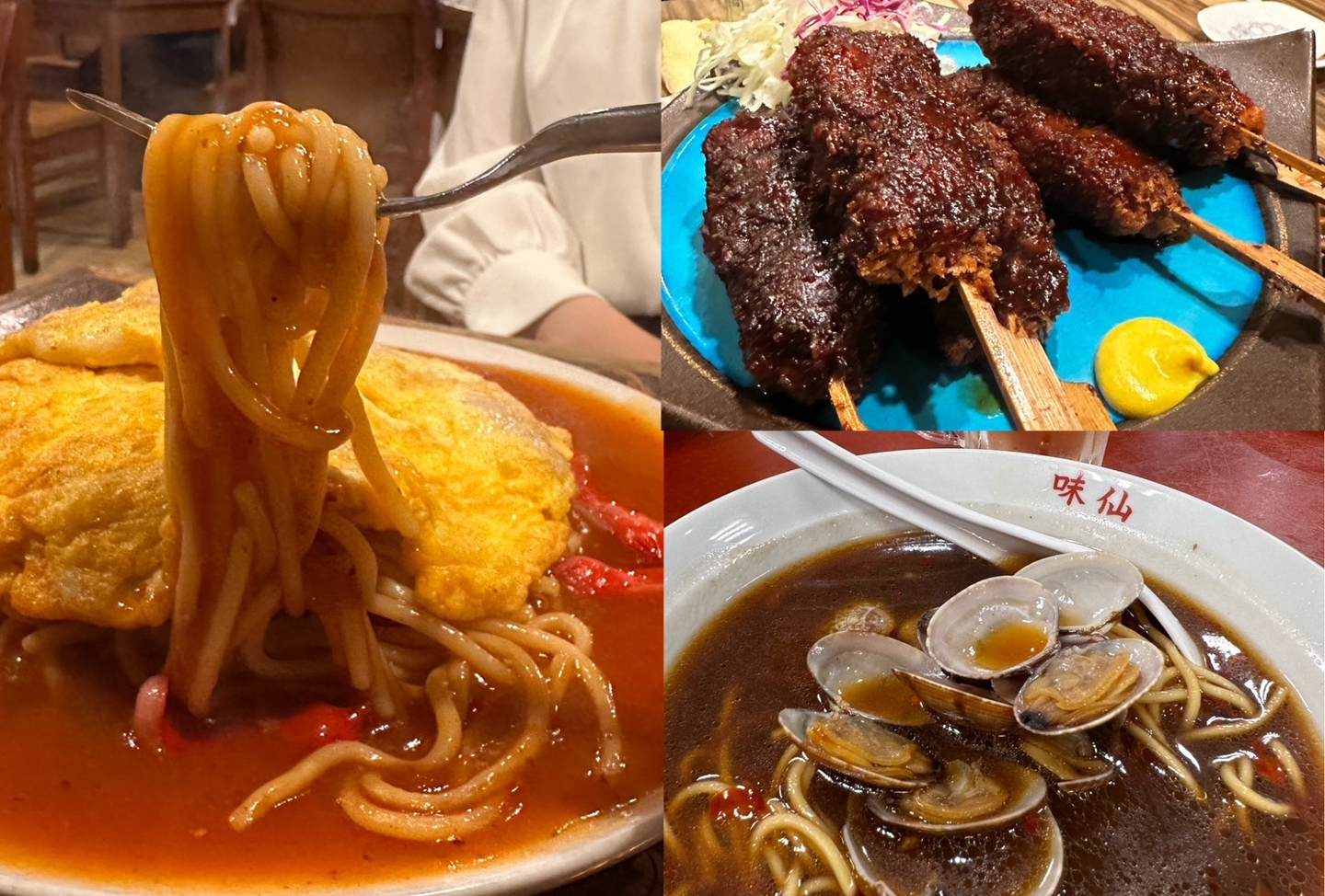 ⑦天むす ⑧どて煮 ⑨鉄板スパ ⑩台湾ラーメン ⑪味噌おでん ⑫小倉トースト ⑬エビフライ