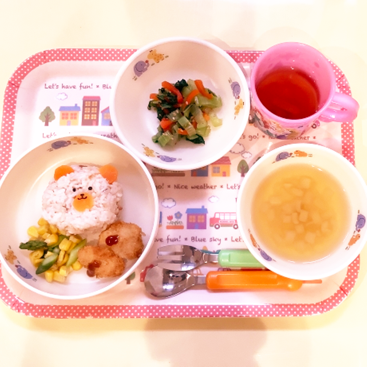 長時間開園しておりますので、管理栄養士の立てた献立を調理員が園内で調理し、出来立てのおやつや昼食を召し上がっていただけます。また、ご希望の方には夕方の補食や夕食まで提供しております。