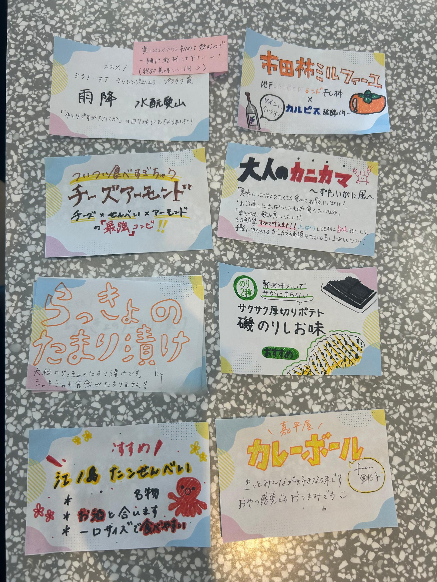 おつまみは新入社員が1人1つずつ考えて、用意しました。
