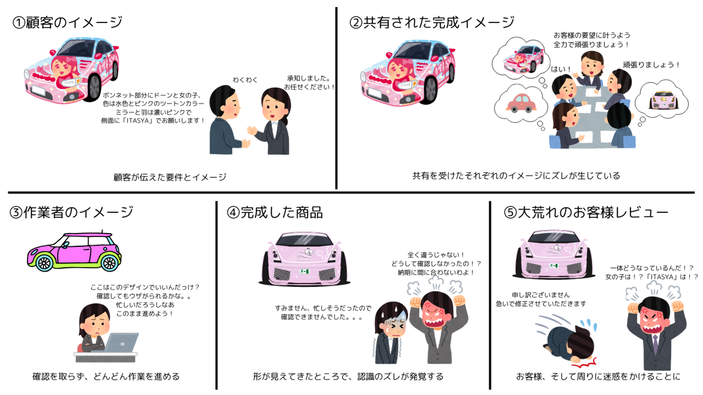 最初はちょっとした認識のズレでも、プロジェクトがどんどん進んでいくにつれてズレが大きくなり、最終的には全く違うものができていた、なんてことが起こり得るのです。