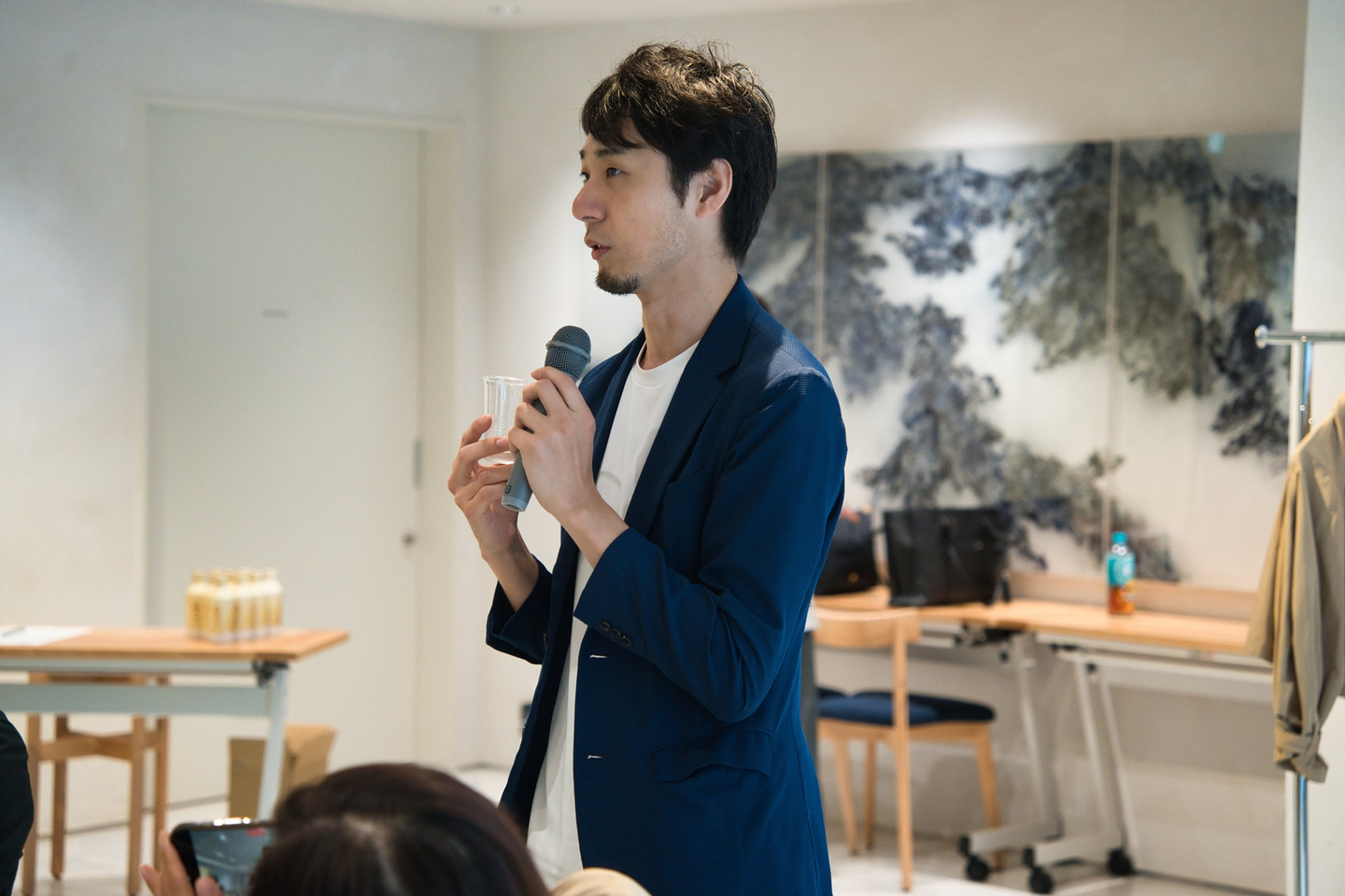 “地方創生を発酵で奏でる”活動を展開するゲスト・DJかもしたろう氏による乾杯の発声