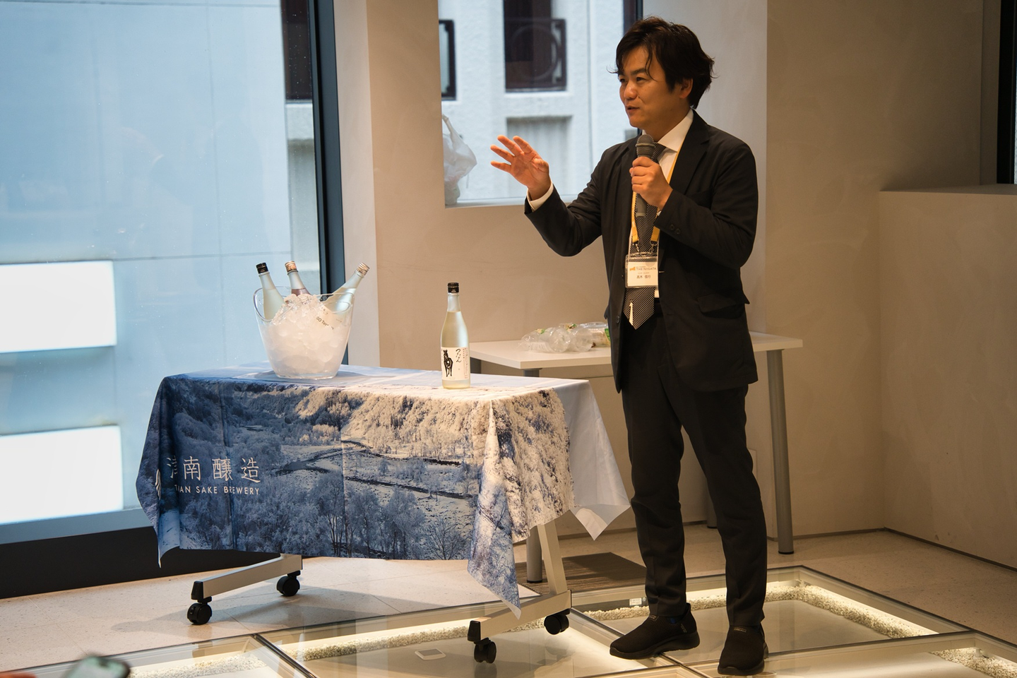祝賀会では、今回の受賞酒である純米大吟醸「つなん」の試飲も行われ、SSIサケ・アカデミー講師のワタナベイナリ氏がその魅力を解説。雪深い津南の地で、五百万石を40%まで磨き、低温環境下でじっくりと仕込んだ「つなん」は、その優雅な香りとキレのある味わいということで、改めて高い評価をいただきました。