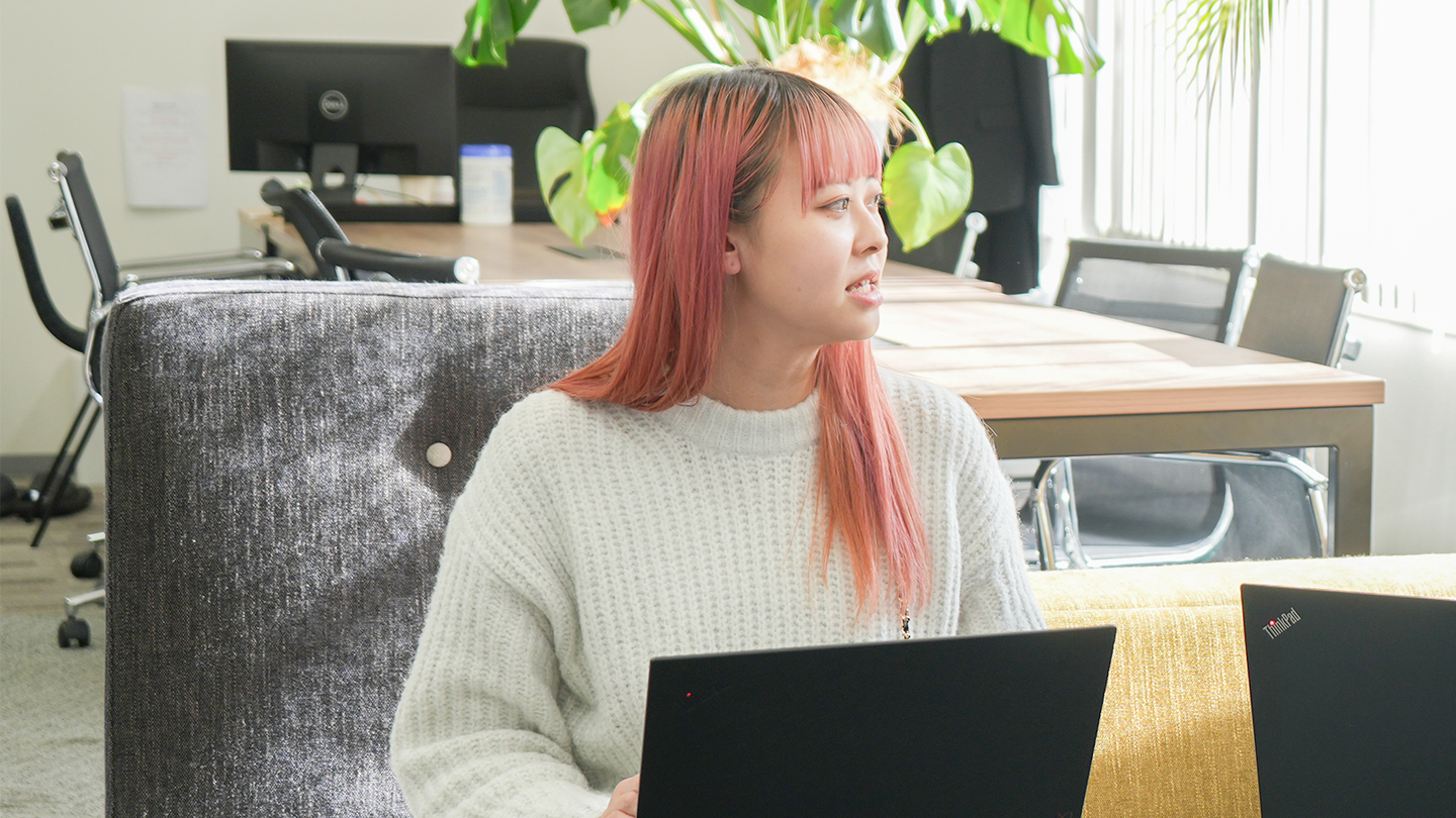 内定が出た何社かのなかで、やはり人を重要視してるところが1番でした!当時はとても小さな事務所だったので、会議や面接をするための個室とかがなくて...(笑)ただ、パーテーションで仕切られた空間で面接を受けました。その時、後ろの方から楽しそうにワーキャーしているのが聞こえてきて...率直に、「楽しそうな会社だな」「雰囲気がいいな」と思いました!