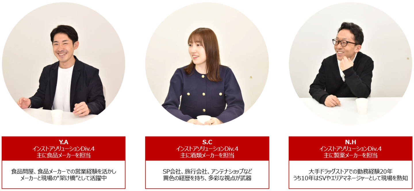 Y.A:私が今後チャレンジしてみたいのは、別のクライアントを担当してみることです。 以前ヘルプで他案件に関わる機会があり、普段とは異なる売場づくりや商品を扱う中で、多くの学びと刺激を得ることができました。とても新鮮で、純粋に楽しかったんですよね。 その経験を通じて、「もっと視野を広げたい」「異なる現場を知ることで、今の担当にも活かせるヒントがある」と強く感じました。今後はさまざまな案件に携わりながら、自分自身の引き出しを増やしていけたらと考えています!