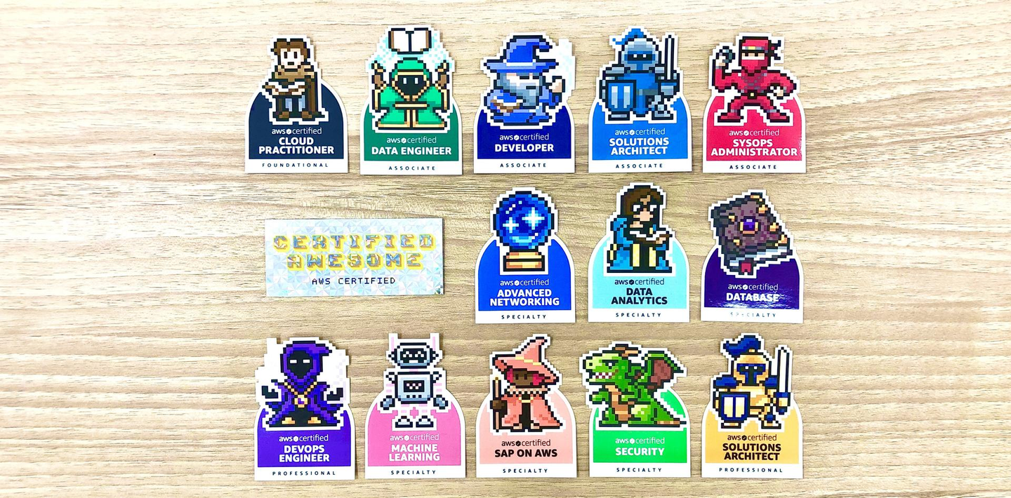 AWS各種受験のときは、参考書を読んで問題を解くというシンプルな勉強スタイルでした。いつも通勤時間を活用していました(今はGCPの勉強しています!)。全冠のタイミングで丁度AWS Summit Japan 2024が開催されたので、認定者(資格保有者)ラウンジで認定者がもらえるステッカーをもらってきました(笑)全部揃うとやはり嬉しいですし、職場のみんなもお祝いしてくれました。