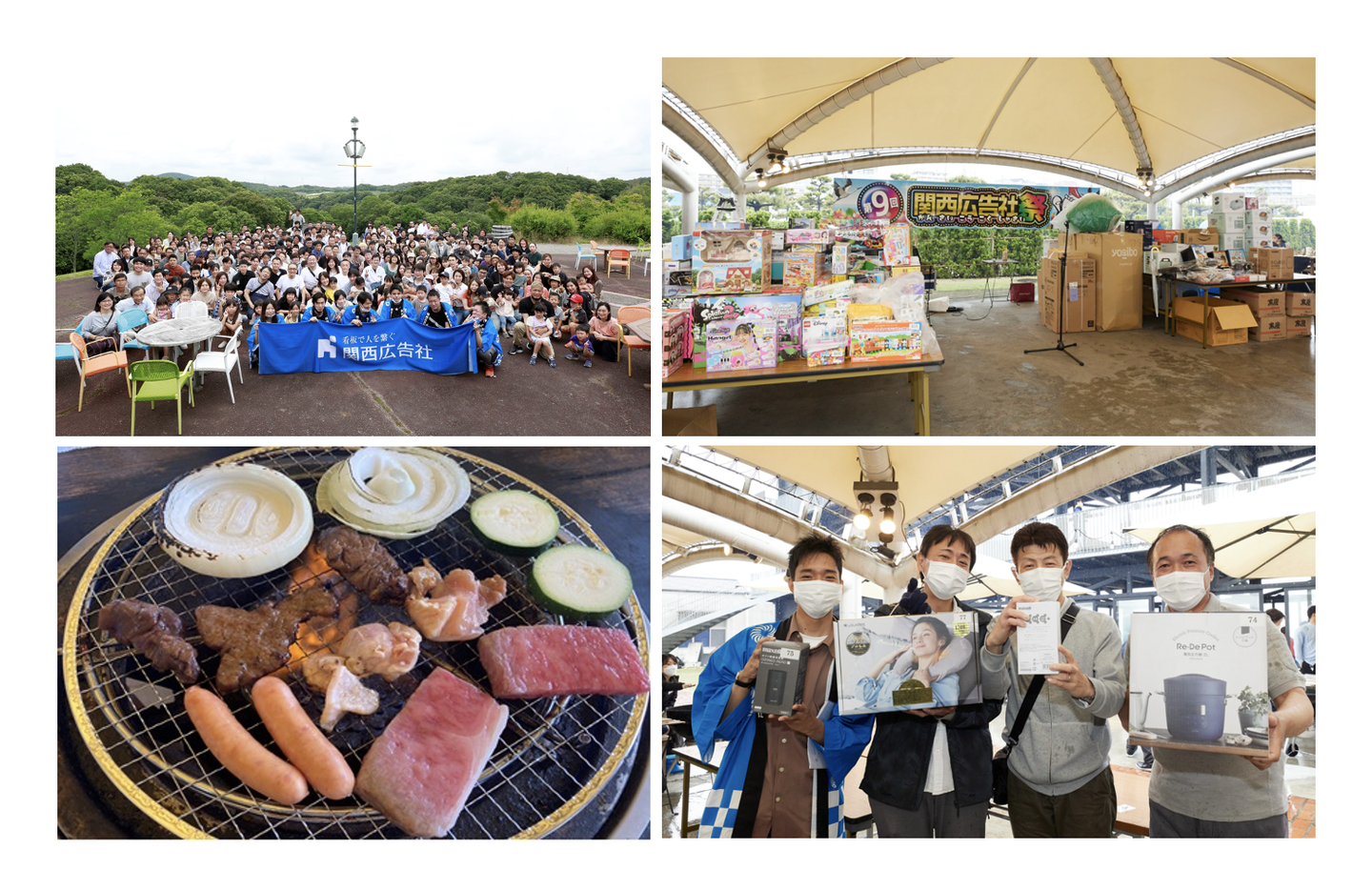 4月〜6月に開催している関西広告社祭では、日頃の感謝を込めて全社員とその家族、ご近所の方々まで招待してバーベキュー大会や豪華景品の抽選会などを行う、終始楽しいイベントとなっています。