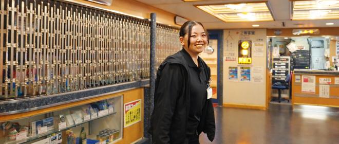 船の操縦や入出港作業を担う甲板部、エンジンや発電機など船の心臓を守る機関部、お客様や船員の安全を支える事務部。そして、港で切符販売や係船作業を行う営業所職員。